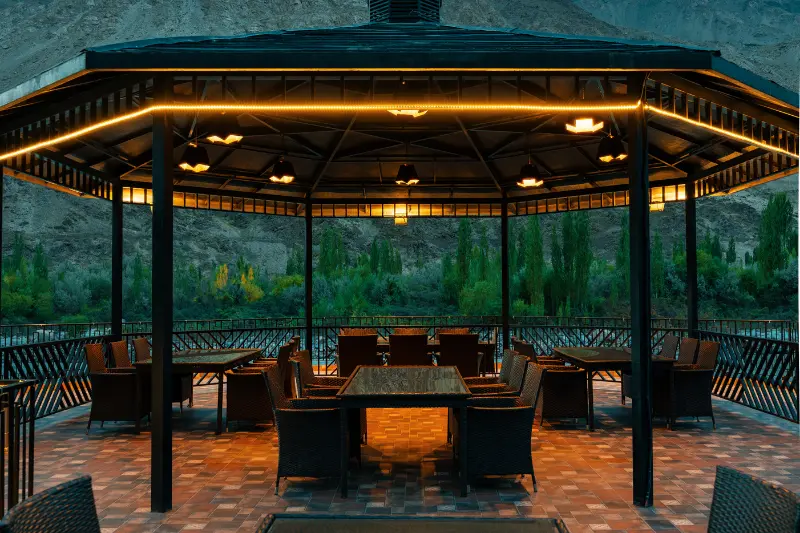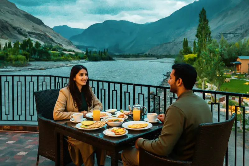 This is the perfect spot for a calm, peaceful breakfast as the valley wakes up, or for an intimate candle-lit dinner under the open sky. The rustic wooden structure, soft lighting, and the soothing sound of the river make this experience unforgettable for couples seeking romance, families looking for relaxation, and travelers who want to connect with Skardu’s natural charm.